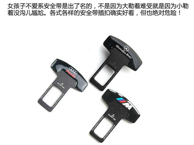 買了車后,特別是一些女孩子喜歡給自己的愛車裝飾裝飾。特別會在中控臺上擺了好多小東西,還會穿著高跟鞋開車等等這樣錯誤的用車習慣。今天榮致汽車焊接件接下去2天會盤點車內好看不好用的裝飾和一些不好習慣: 1.安全帶插扣 對于那些就不想系安全帶的人,安全帶插扣自然就誕生了,去看看自己身邊朋友的車準保有一輛車上有這玩意,把它一插,警報不響,不用被安全帶勒著確實舒服,但你可知,汽車上的安全裝備發展到現在,什么各個部位的氣囊,主動剎車,自適應巡航都不如一根安全帶作用重要。